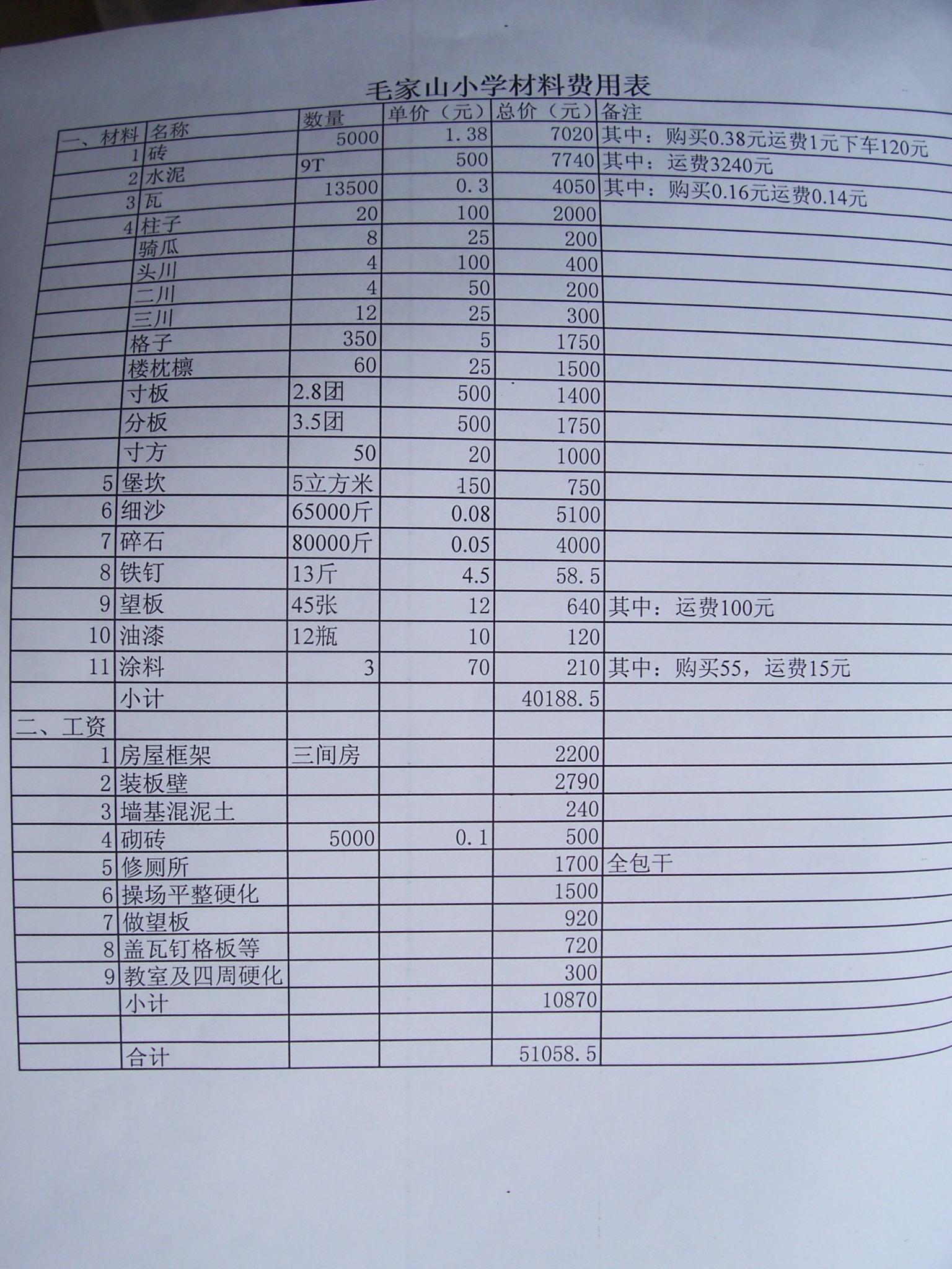 民主乡代家沟等三所学校决算书