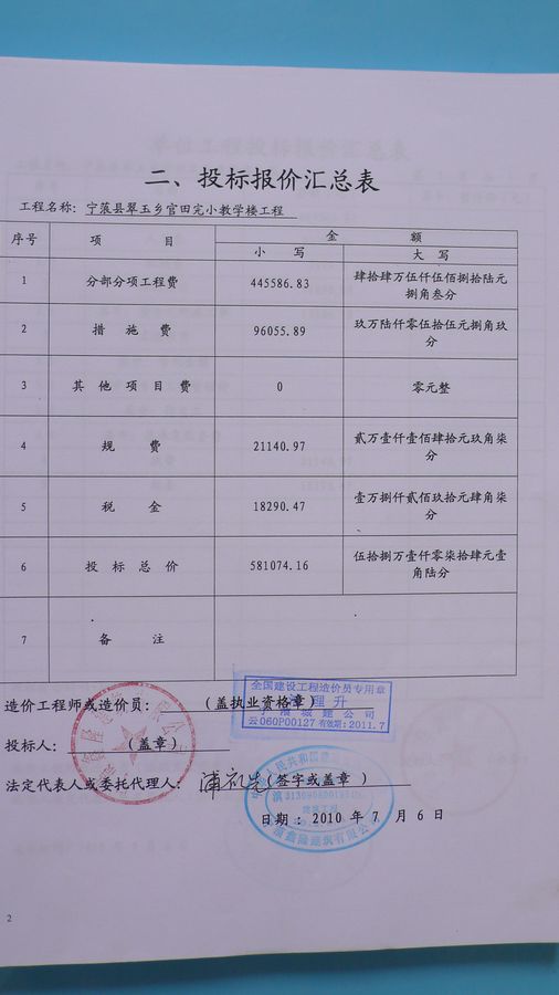 宁蒗县翠玉乡官田完小教学楼建设工程投标文件: