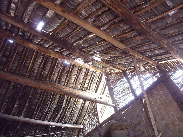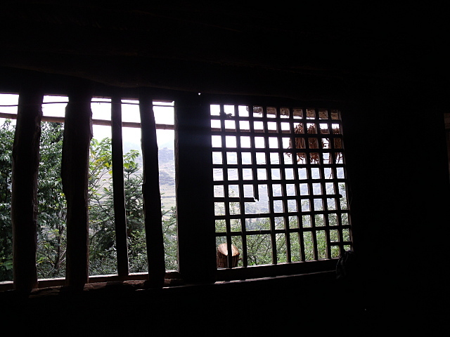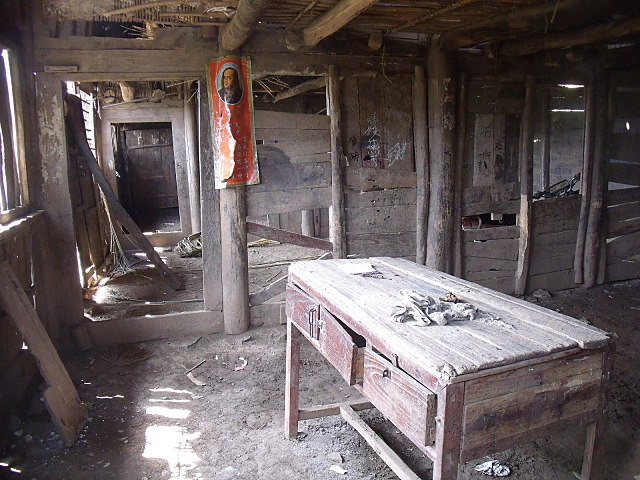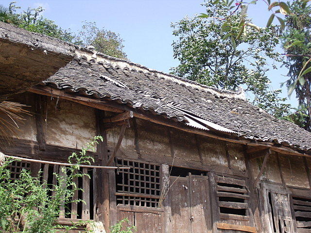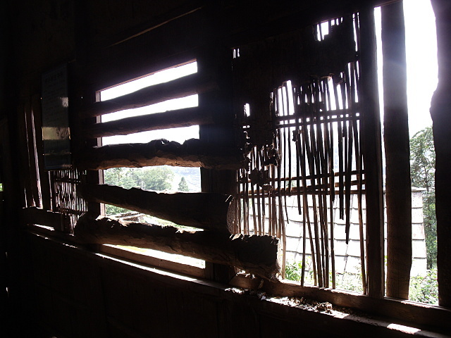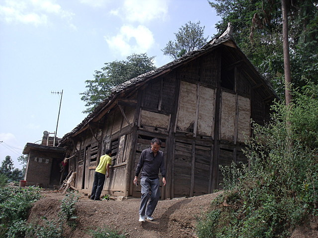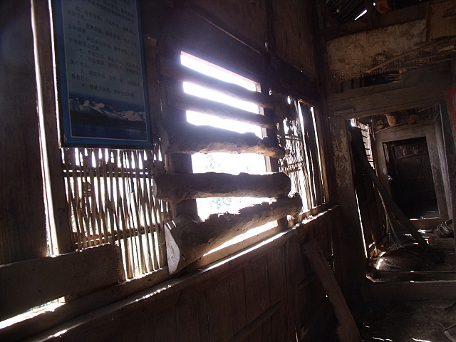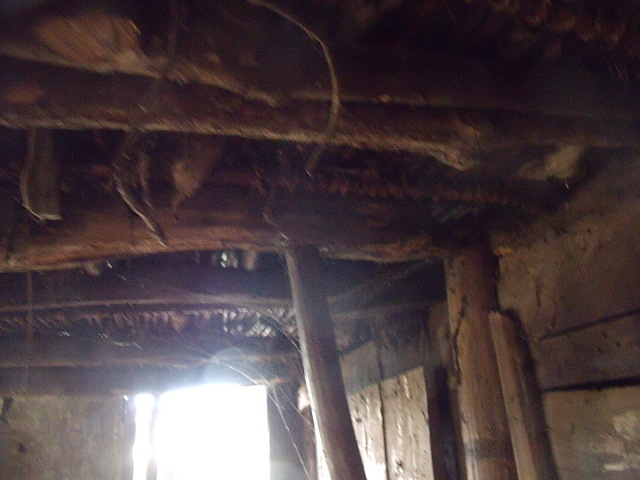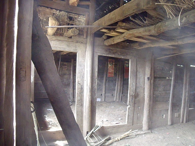 危房:横梁已经断了,靠木柱支撑着。学生已搬移出去了。