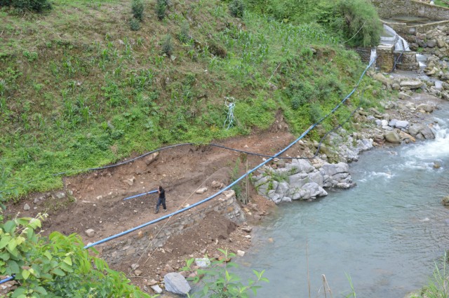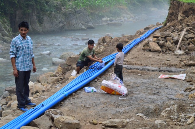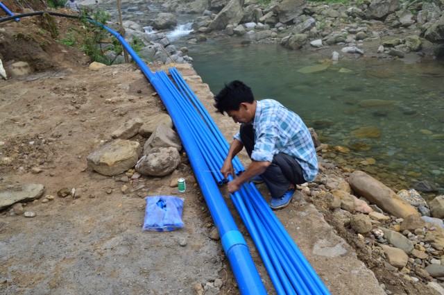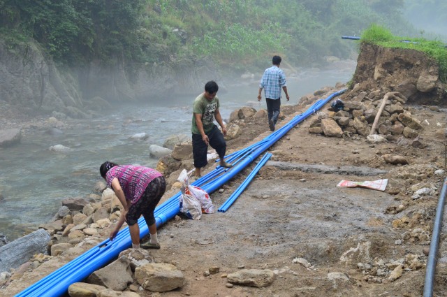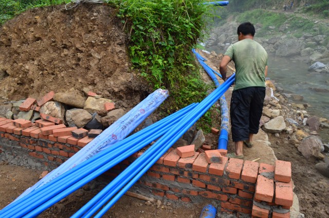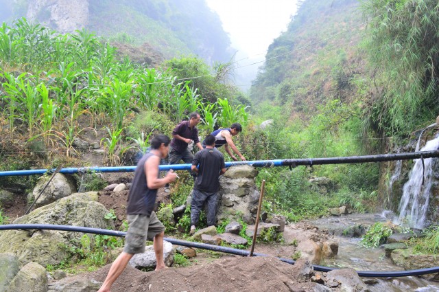 挖蓄水池基础,铺、架、埋管 群众、投劳