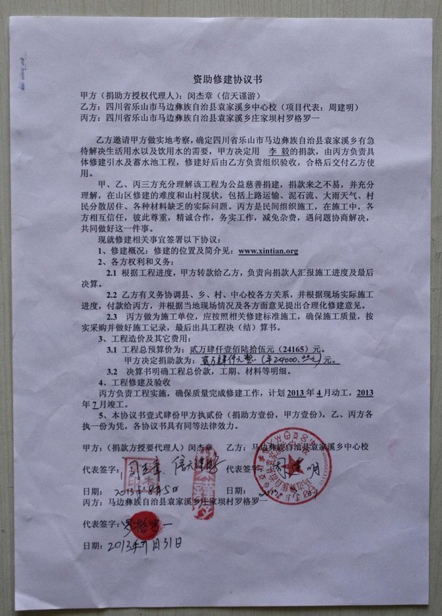 » 四川马边县袁家溪乡中心校修建蓄水池(晓燕的朋友李毅捐)