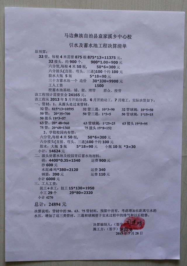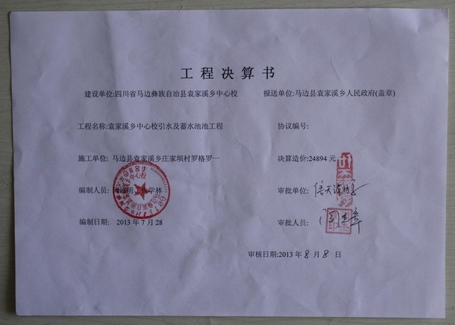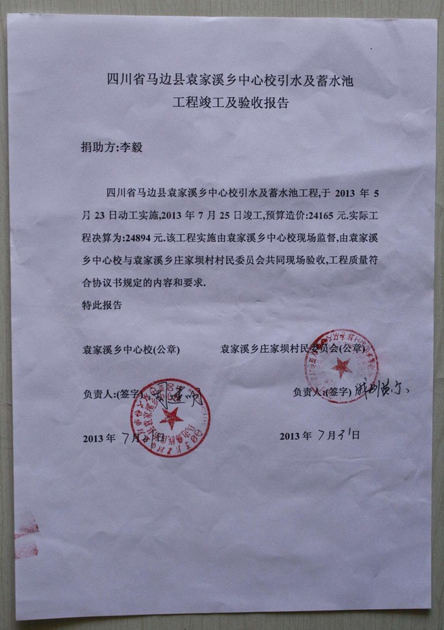 标题: 四川马边县袁家溪乡中心校修建蓄水池(晓燕的朋友李毅捐)