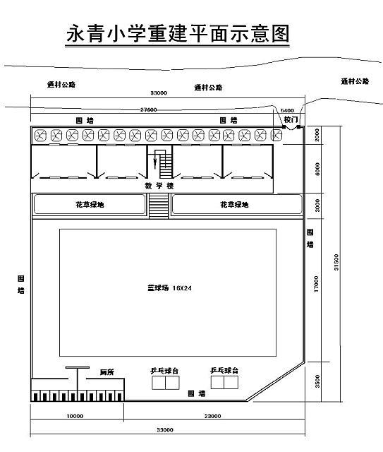 五、围墙、大门及操场硬化、国旗台、乒乓球台 估算造价为3.6万元