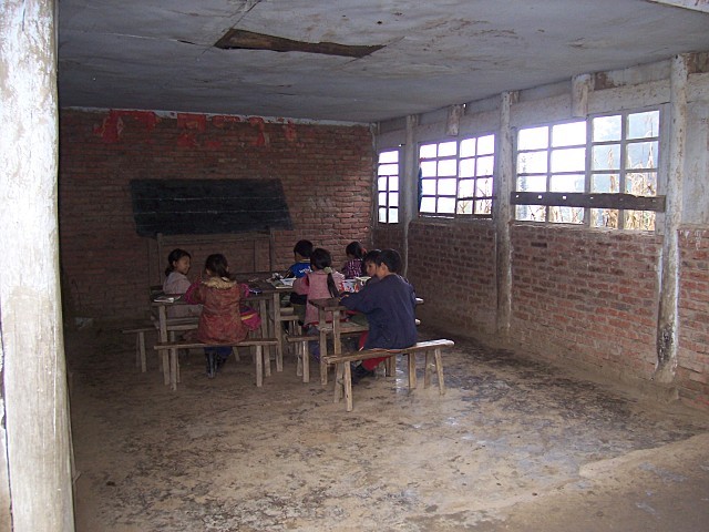 教学楼一座,一楼一底,24平米教室6间、32平米教室2间(1-6年级、学前班、多功能教室),砖混全现浇结构,层高3.2米,总高7米,正面贴瓷砖,其余三面为水泥砂浆搓沙面;门为钢门,窗为塑钢窗,楼地面为水泥豆石地面,内墙及天棚为水泥砂浆抹面、刮仿瓷涂料;黑板为磁性黑板,每间教室安装日光灯四盏,吊扇两个,黑板旁装插座两个。楼板及楼面厚度120mm,楼面防水炉渣混凝土找坡、SP3防水卷材、豆石保护层。
