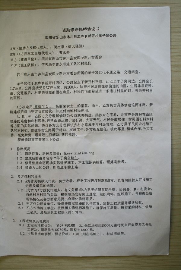 捐款人为程先生,捐款43000元,计划2010年8月17日开工,即农历七月初八。