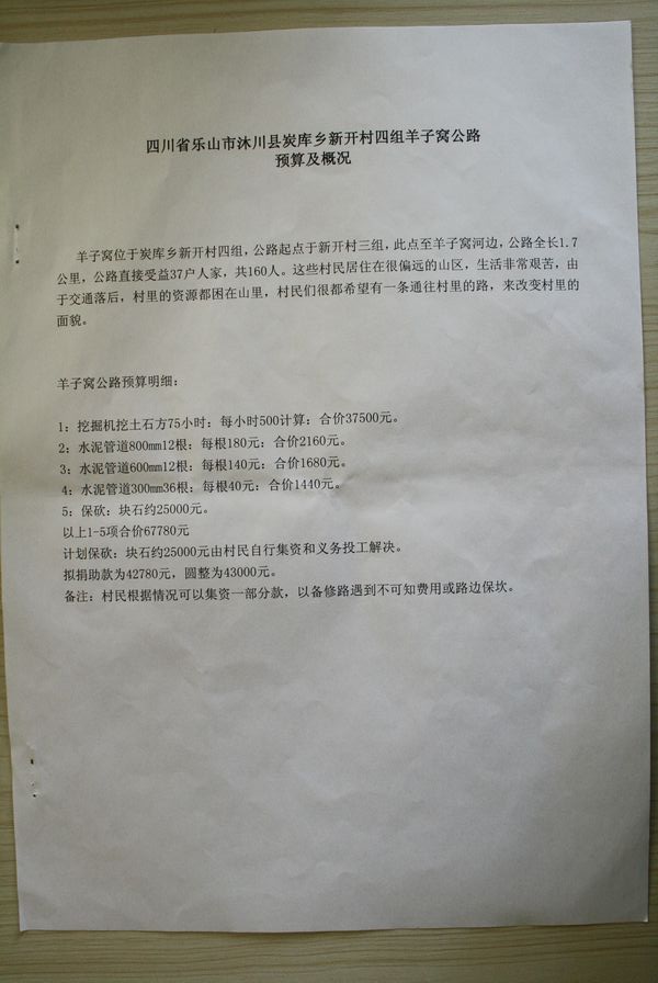 故,各村情况不一样,修路架桥预算没有可比性,不宜套用,特此声明,谢谢理解。