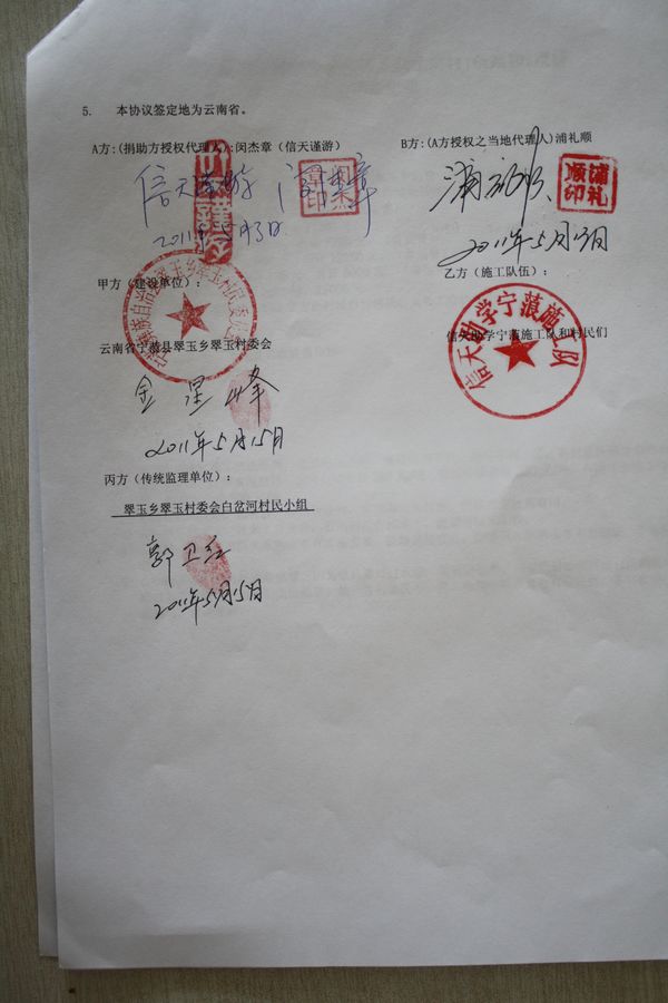 1.水泥8吨,每吨500元,总计4000元(含县城到翠玉乡运费,翠玉到施工现场由村民义务免费托运。)