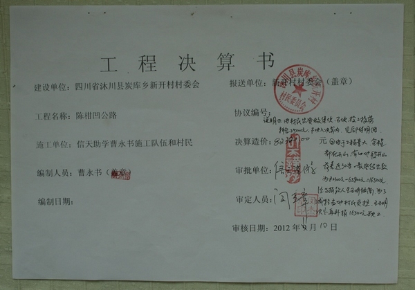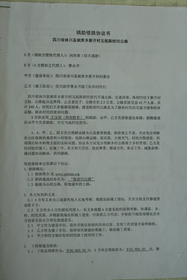 标题: 20条路:四川省沐川县炭库乡陈柑凹公路(王玉明捐)