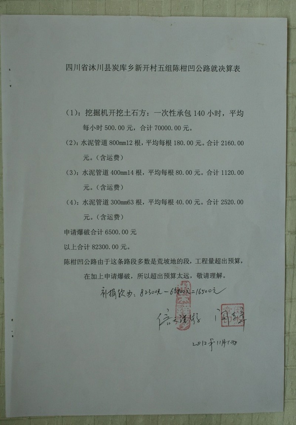 四川省沐川县炭库乡新开村五组陈柑凹公路预算表