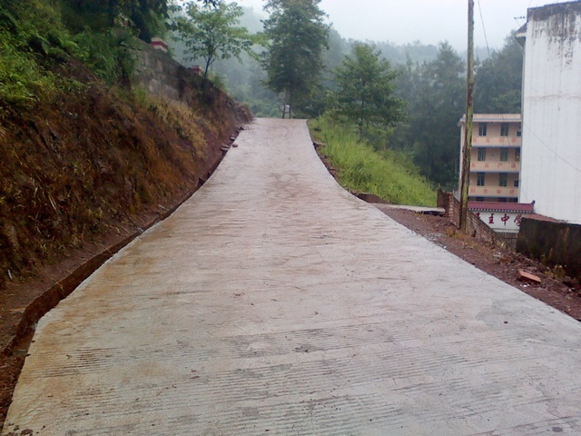 下图是四川马边县民主乡中心小学门口捐修的路,铺了水泥-------修好后的照片。
