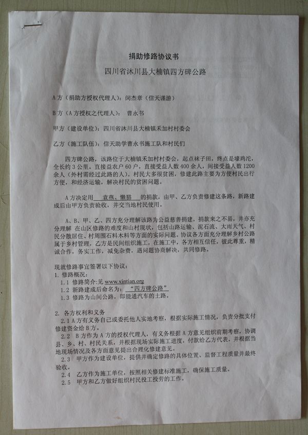 (4)有的地方村民太困难,在大山更深处,这样,我们就尽量不让村民再集资了,只投工投劳就可以了。而,有的地方小水泥路就通到了山脚下,我们修路来接通外界的小水泥路,这样,材料可以直接运输到山脚下,村民除了投工投劳,就再集资一些钱,我们共同修建山村公路。