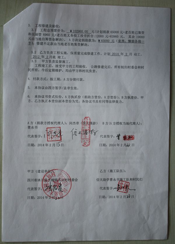信天助学决定捐助65000元,其余由当地自筹资金解决。