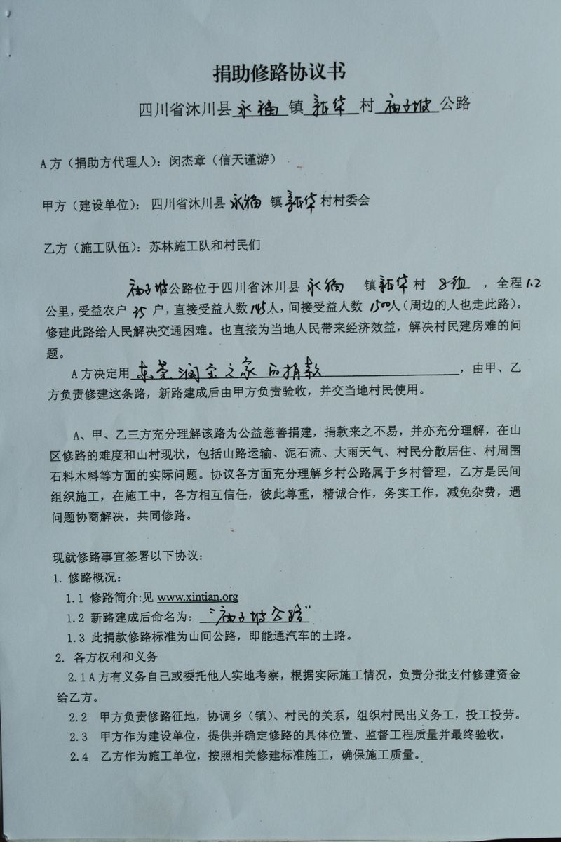 捐助修路协议书