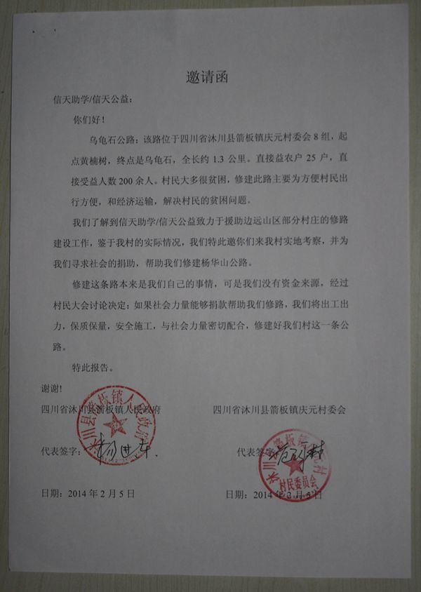 邀请函、修建协议书