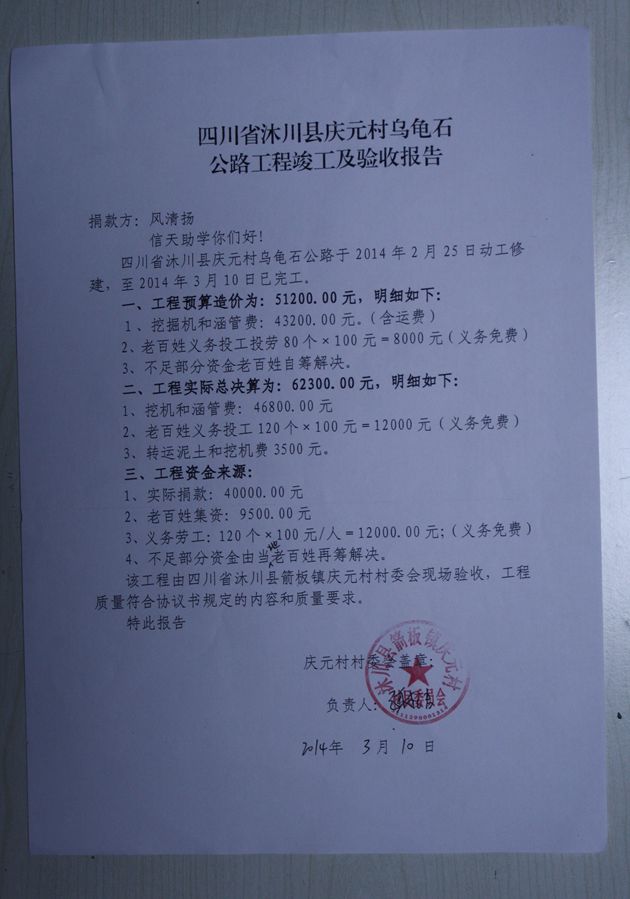 信天助学决定捐助40000元,其余由当地自筹资金解决。