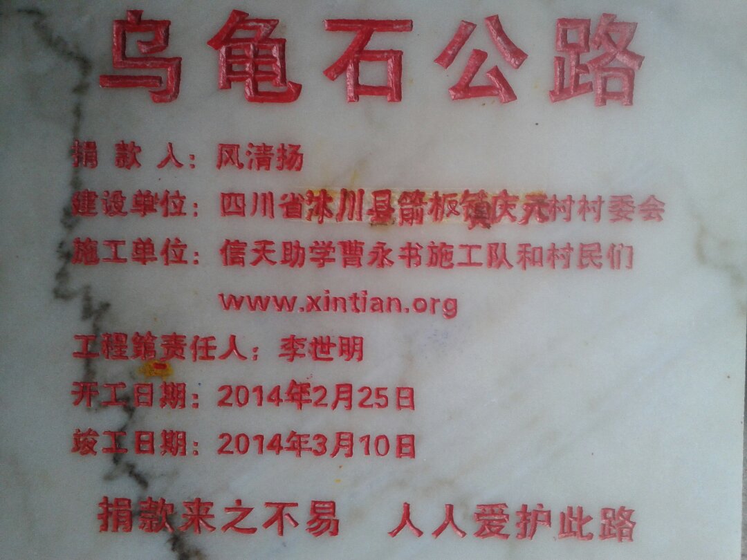乌龟公路简介:该路位于箭板镇庆元村委会8组,起点黄楠树,终点是乌龟石,全长约1.3公里。直接益农户25户,直接受益人数200余人。村民大多很贫困,修建此路主要为方便村民出行方便,和经济运输,解决村民的贫困问题。