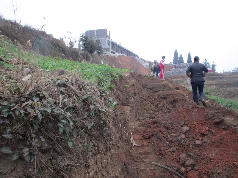 这段道路地面属于猫场镇长征村,不需要修排水沟,需要修道路护坡(挡水墙)