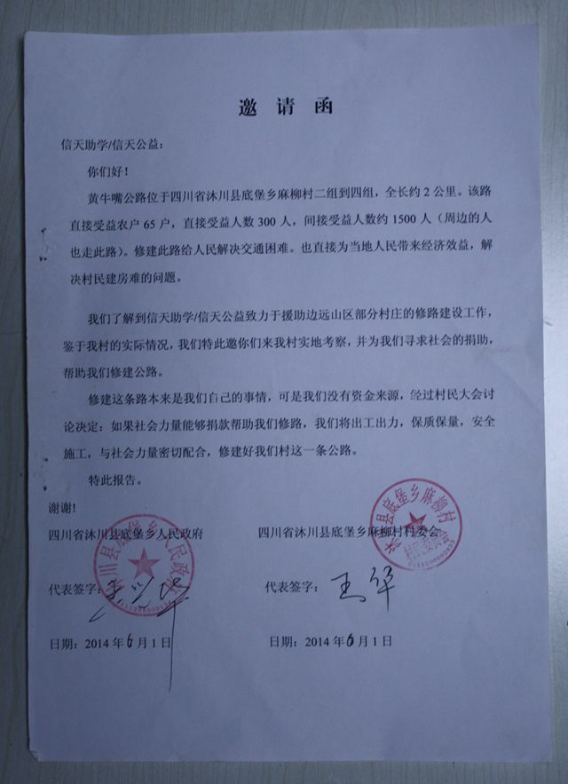 标题: 第40条-四川省沐川县底堡乡麻柳村黄牛嘴公路(特首捐)