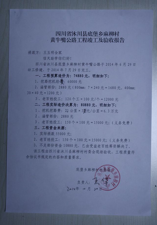 以上合计:74880元,刨除老百姓投工投劳后是:62880元。