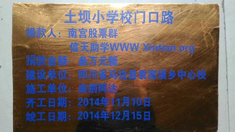 标题: 第43条路:四川省马边县袁家溪乡土坝小学门口路-南宫股票群捐