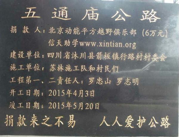 五通庙公路位于四川省沐川县箭板镇行路村四组,起点是五通庙,终点是围墙头,全程约2公里,直接受益农户35户,人数140人,间接受益人数约800人(周围的人也路过此路)。当地村民大多很贫困,修建此路主要为方便村民出行方便,和经济运输,解决村民的贫困问题。