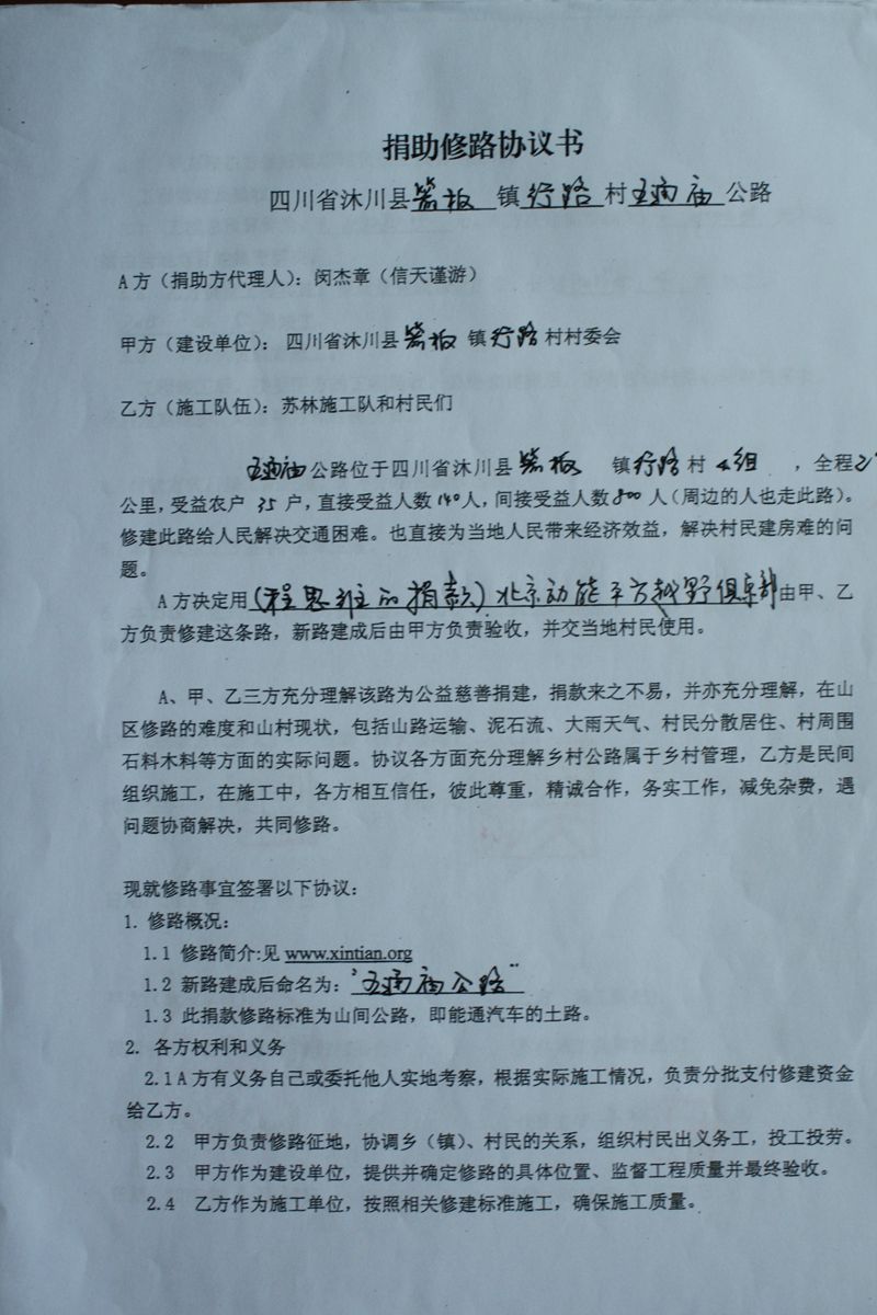 捐助修路协议书