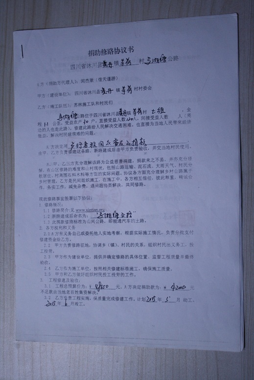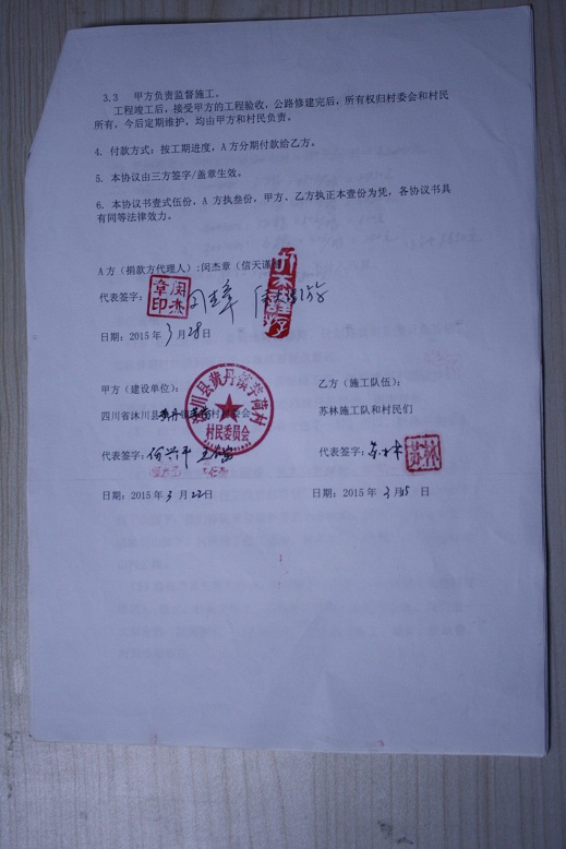 (4) 有的地方村民太困难,在大山更深处,这样,我们就尽量不让村民再集资了,只投工投劳就可以了。而,有的地方小水泥路就通到了山脚下,我们修路来接通外界的小水泥路,这样,材料可以直接运输到山脚下,村民除了投工投劳,就再集资一些钱,我们共同修建山村公路。