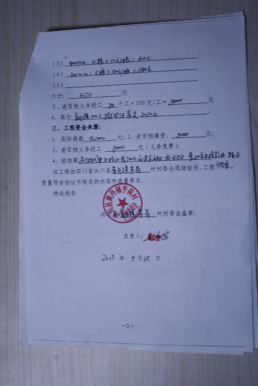 拟捐助:肆万贰仟元整(小写:42000元),涵管费和不足部分由村民集资自理。