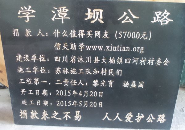 正式文书及牌子上书写的 捐款人为:“什么值得买” 网友。