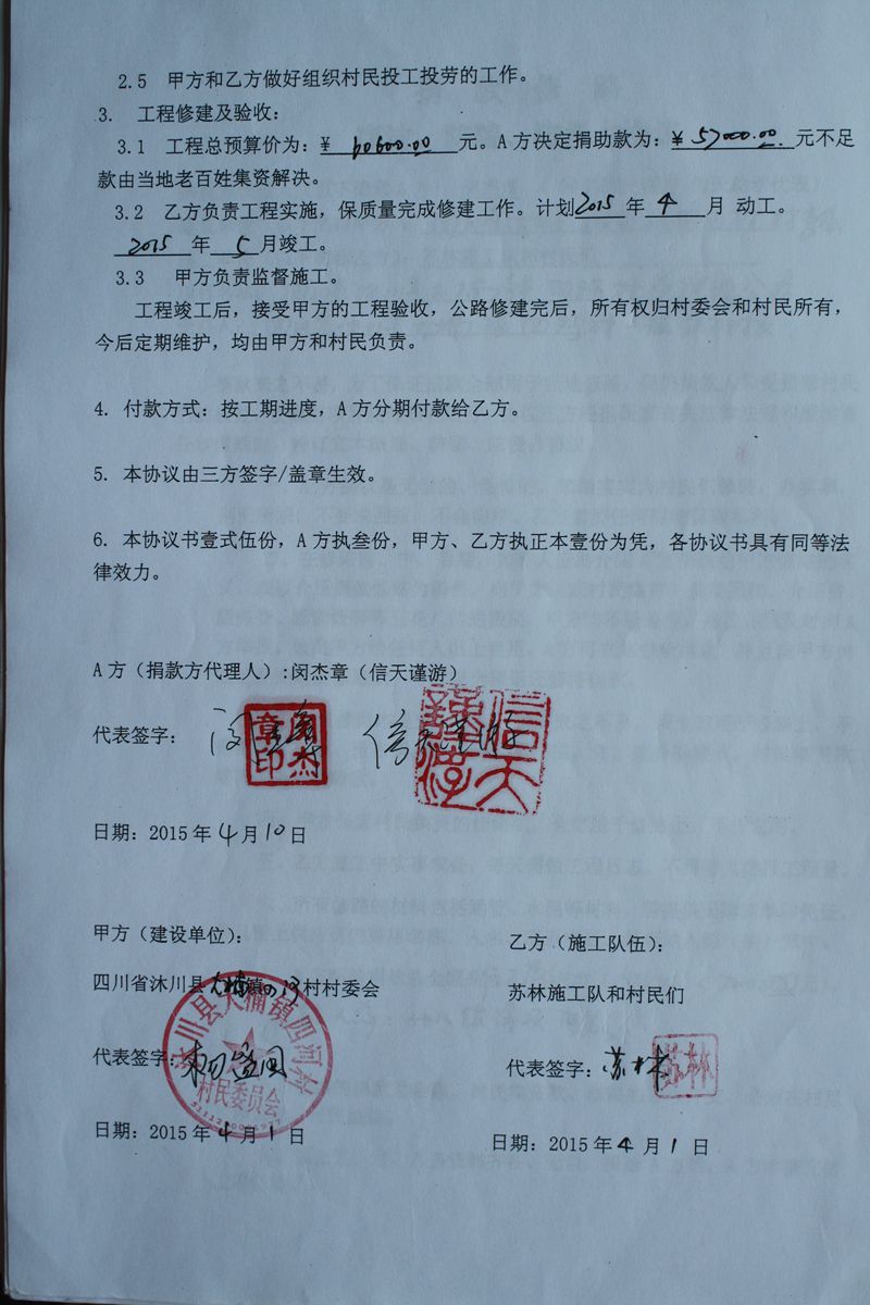 捐助修路协议书