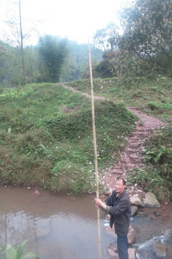 桥面高度,位置大约在 竹竿是上半部。