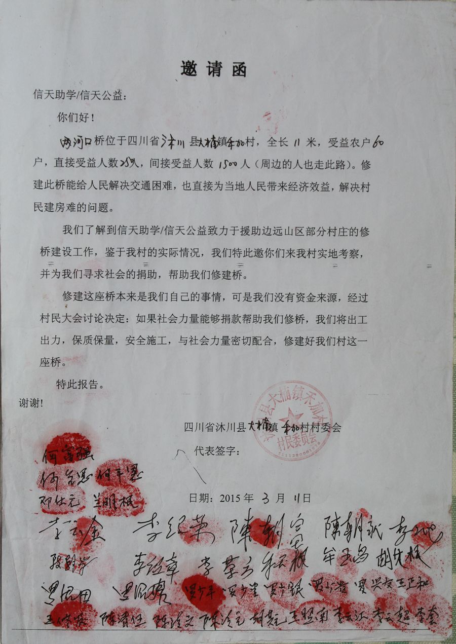 两河口桥位于四川省沐川县大楠镇禾加村六组,该地方一下雨涨水就不能过河,特别是学生,涨了水早上就不能去上学,或者是放了学不能回家。该桥直接受益人数250人,农户60户,间接受人数约1500人,周围的人路过此桥。
