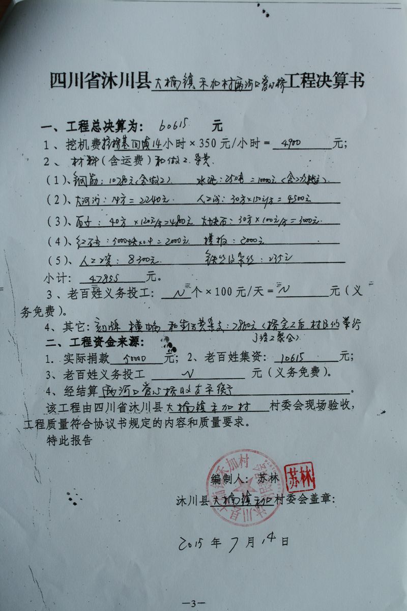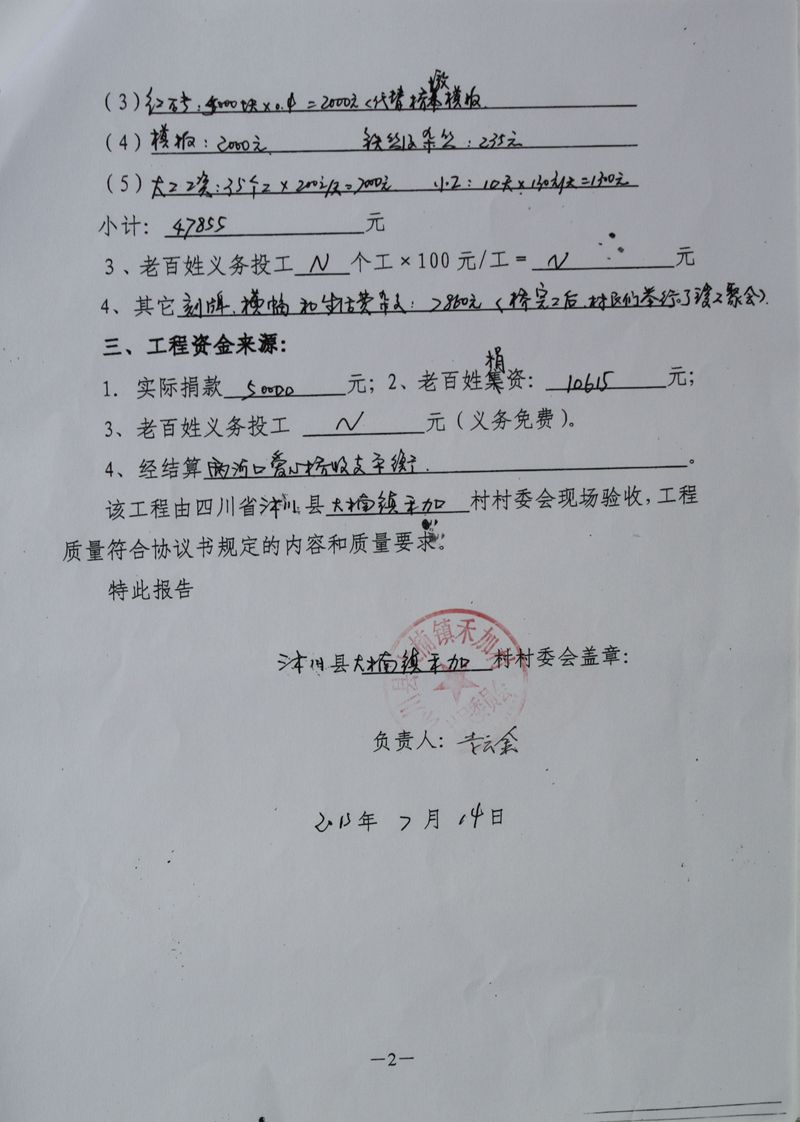 (5)修路预算分好几部分,有挖掘机、涵管、炸药爆破(山崖需要爆破)、堡坎、村民义务工、征地等。修路,我们不全包,我们出一大部分钱:挖掘费用、山崖爆破等。村民出义务工、涵管、征地费、村民小额集资。