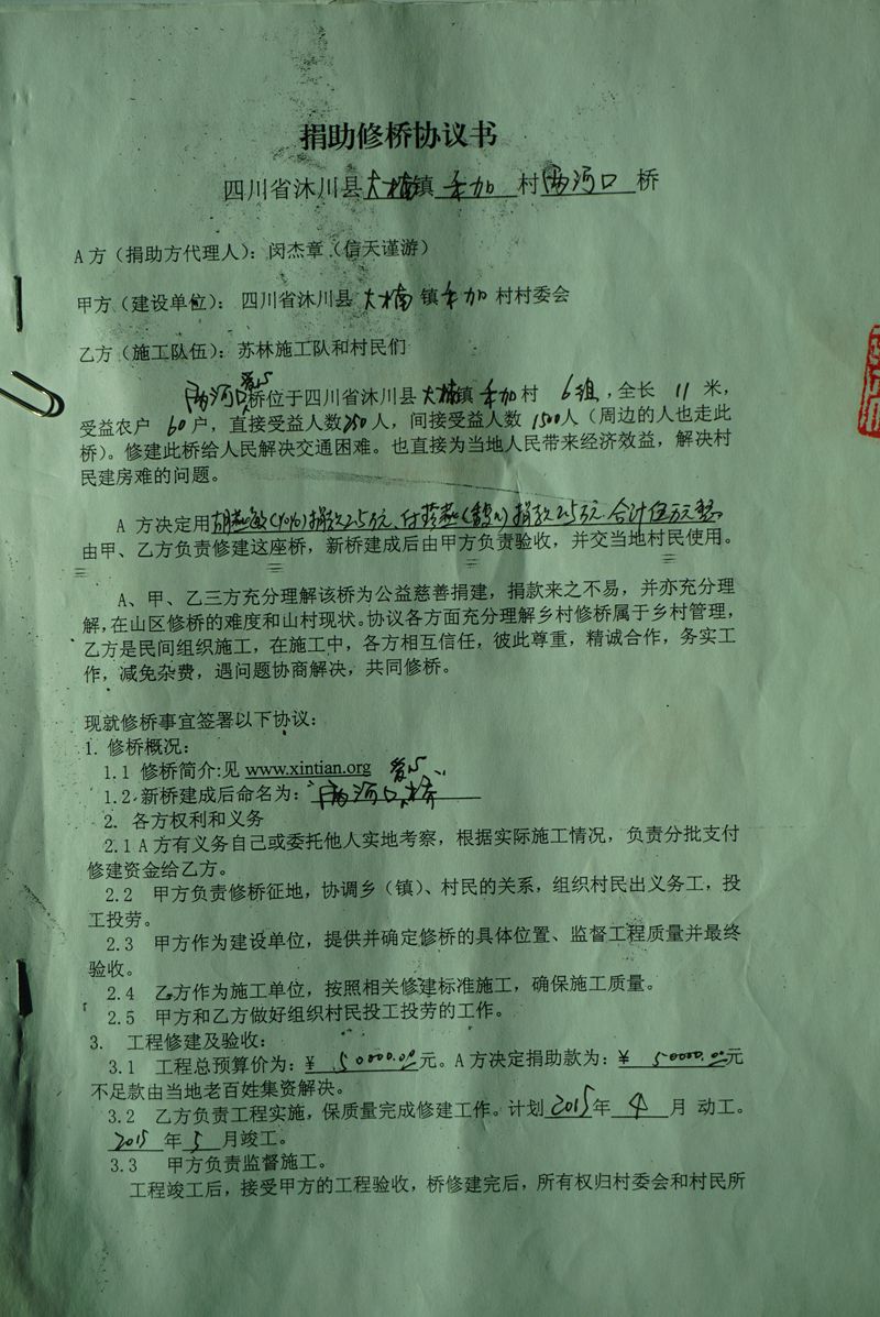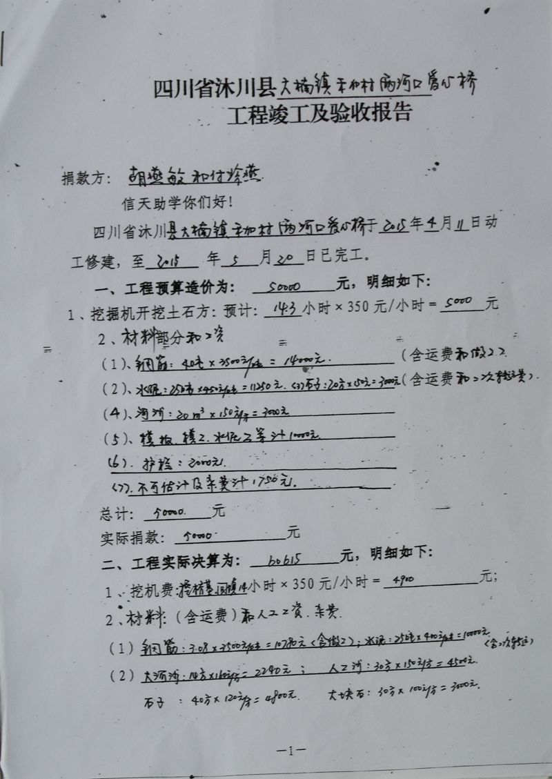捐款人为yoyo(胡燕敏)和馥儿(付珍燕),每人2.5万元,修桥资料中捐款人均用真名。