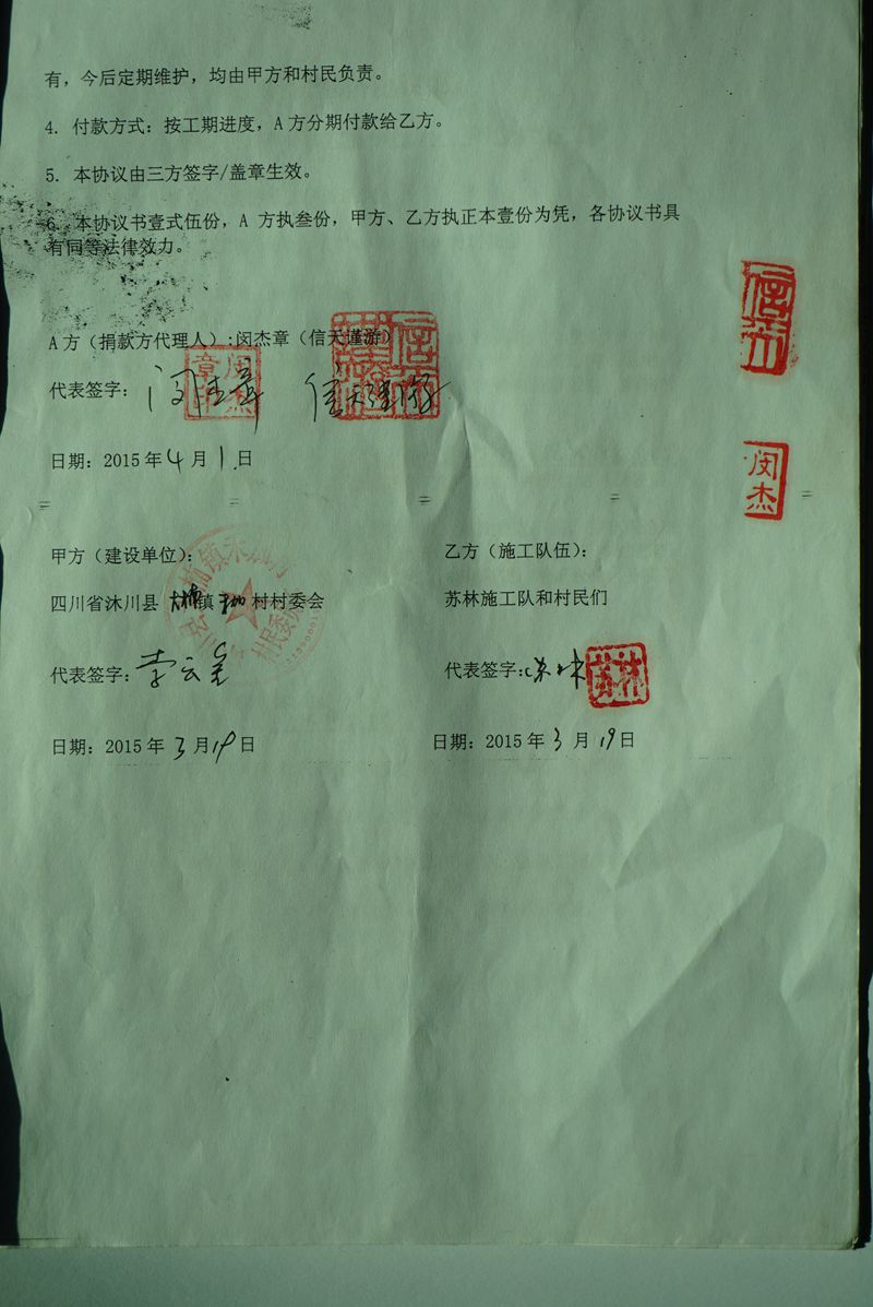 (4) 有的地方村民太困难,在大山更深处,这样,我们就尽量不让村民再集资了,只投工投劳就可以了。而,有的地方小水泥路就通到了山脚下,我们修路来接通外界的小水泥路,这样,材料可以直接运输到山脚下,村民除了投工投劳,就再集资一些钱,我们共同修建山村公路。