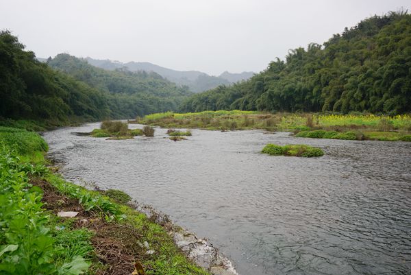 在河堤上面,见右边的竹林,在竹林里修一条沿河的路。