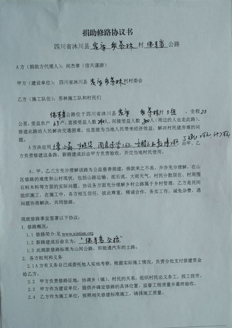 捐助修路协议书