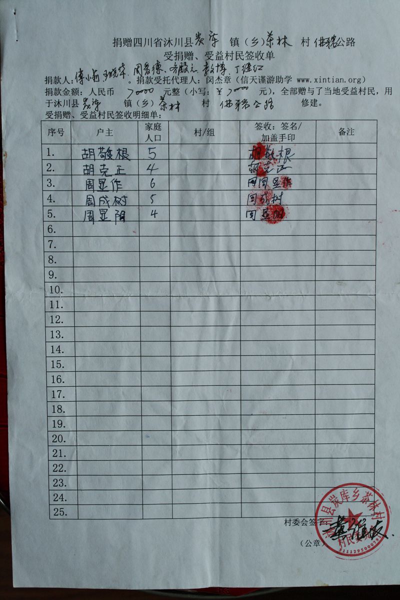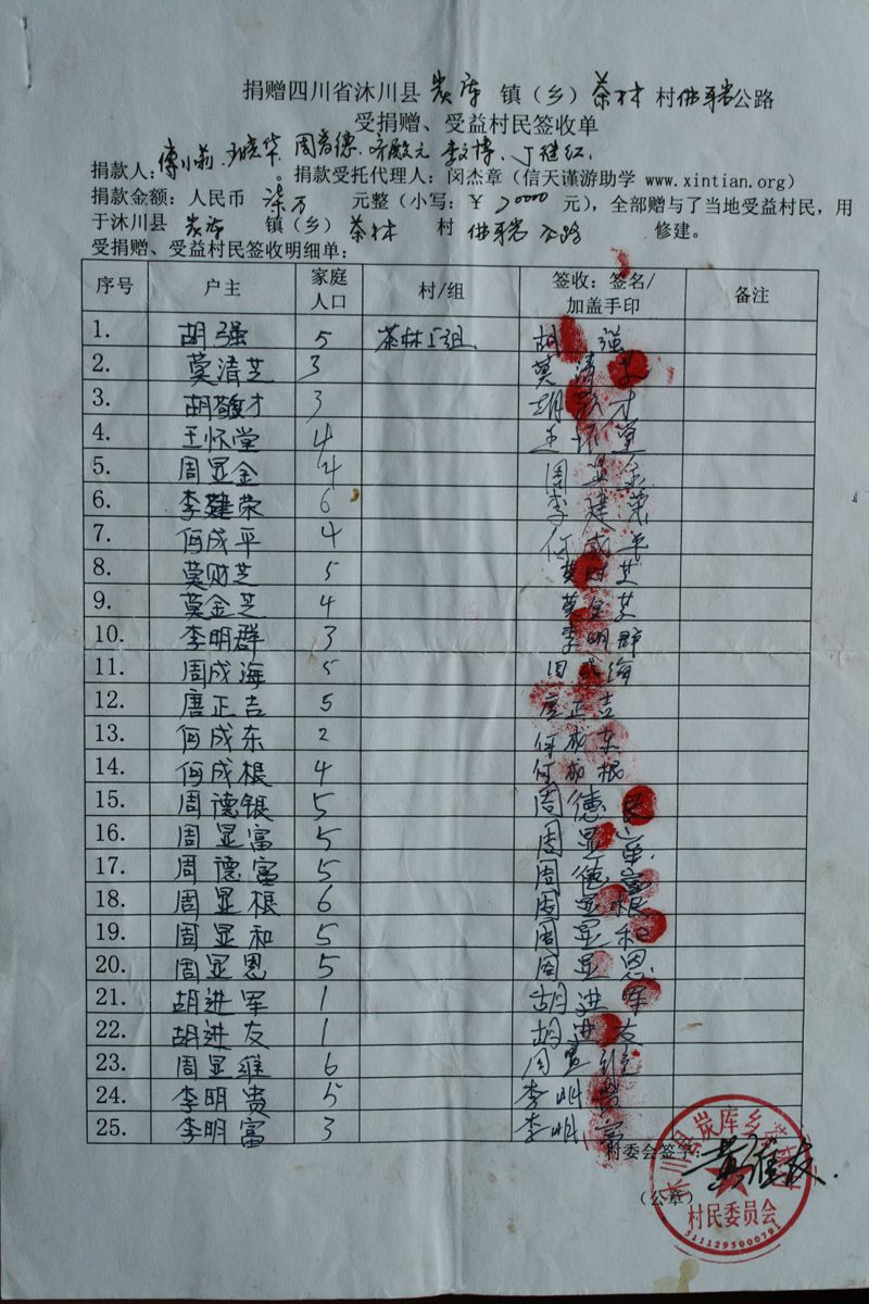 受益村民签收单