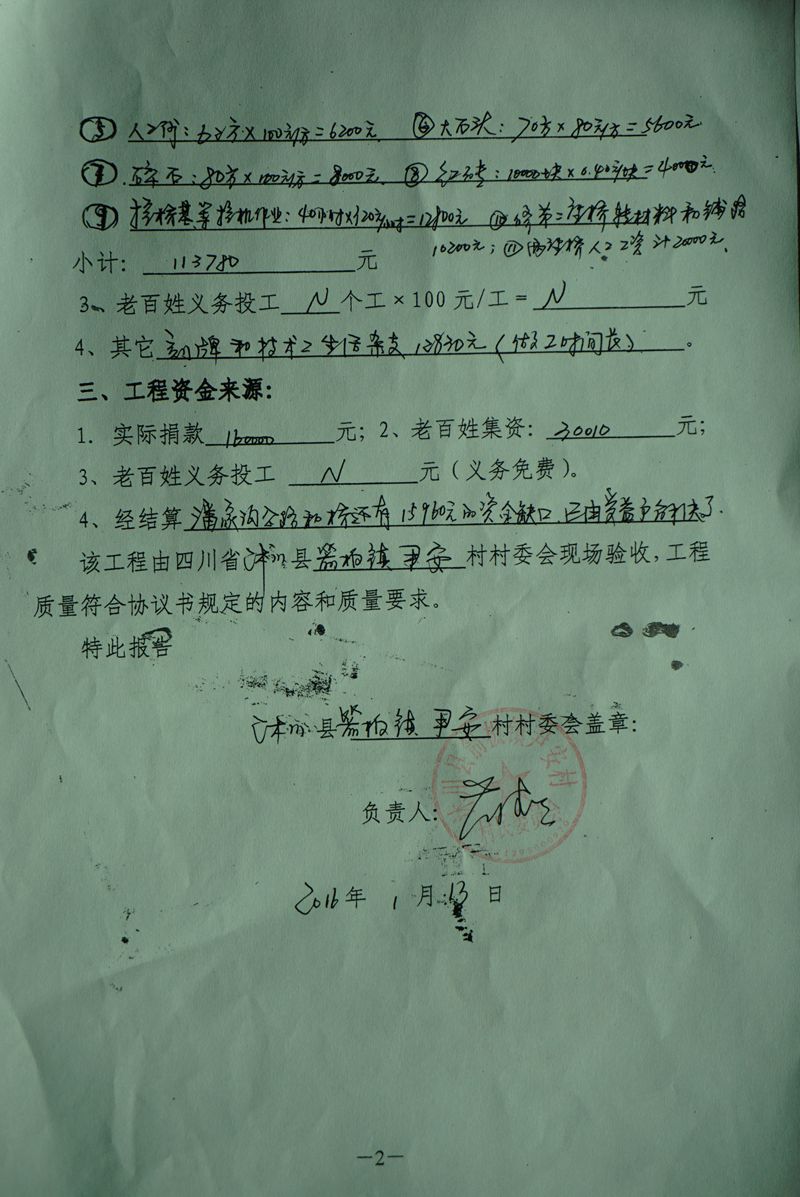 六、合计总价190010元。老百姓想办法自筹资30010元,还有160000元的资金缺口,需社会援助。