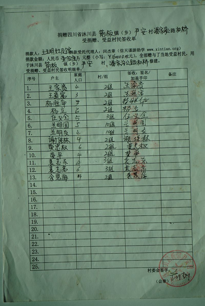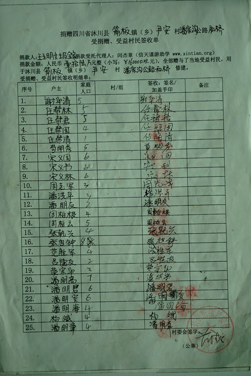 受益村民签收单