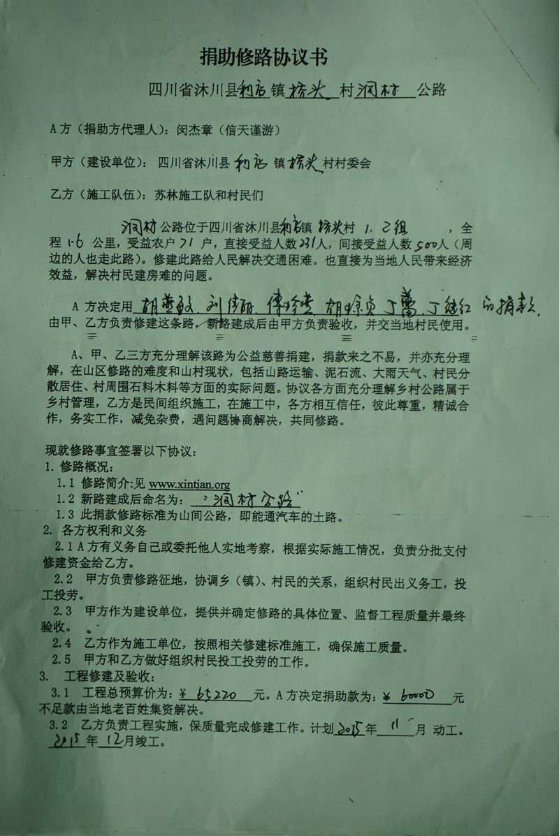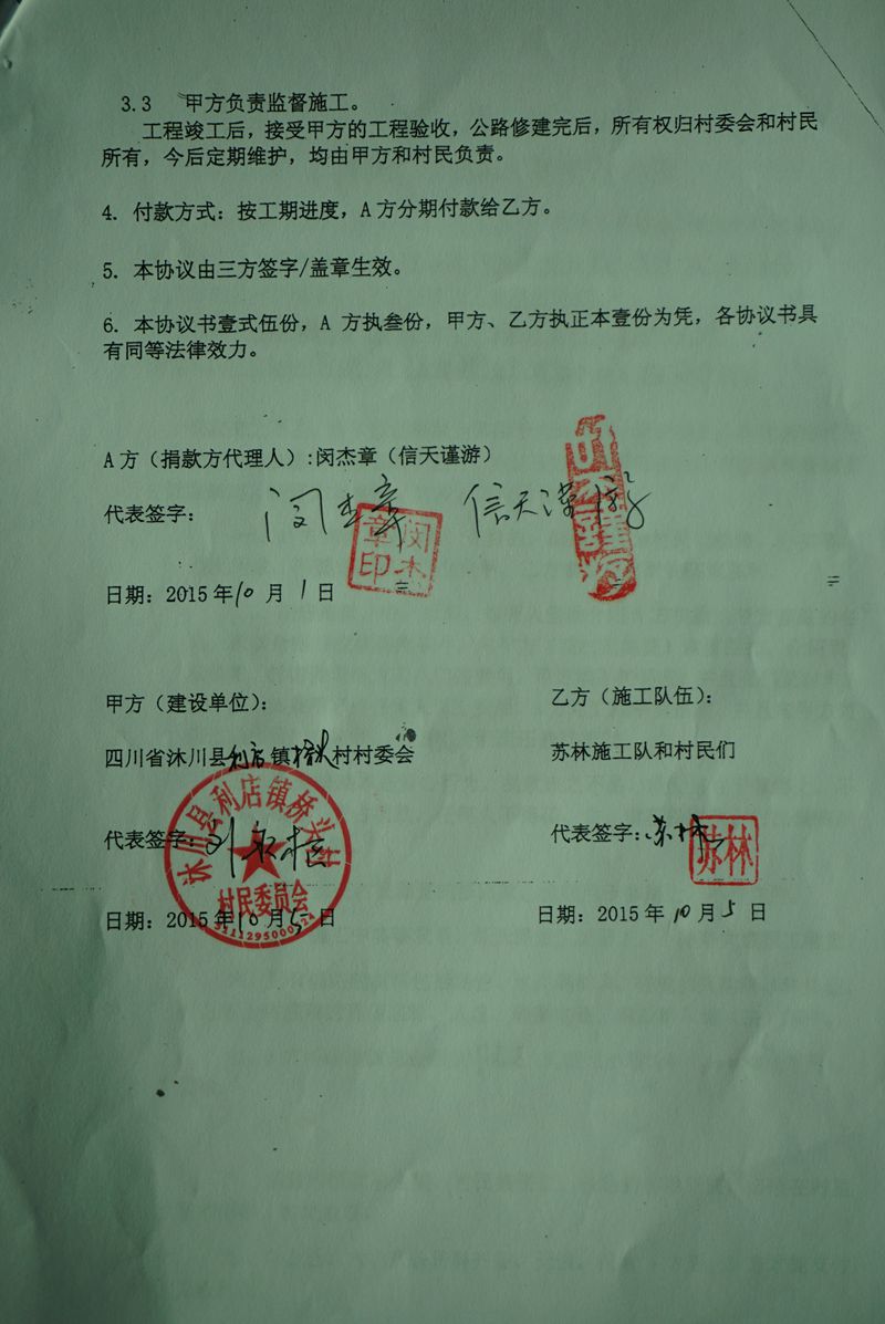 (4) 有的地方村民太困难,在大山更深处,这样,我们就尽量不让村民再集资了,只投工投劳就可以了。而,有的地方小水泥路就通到了山脚下,我们修路来接通外界的小水泥路,这样,材料可以直接运输到山脚下,村民除了投工投劳,就再集资一些钱,我们共同修建山村公路。