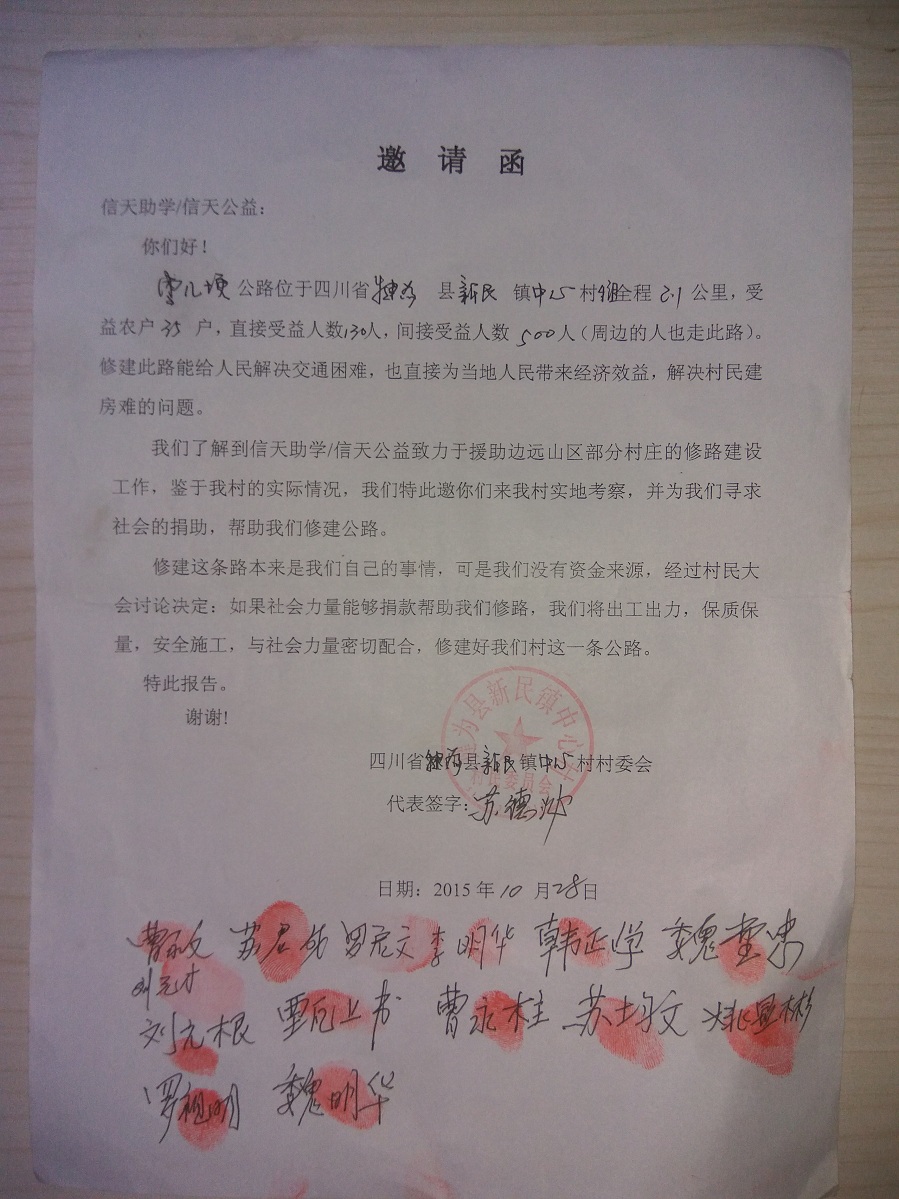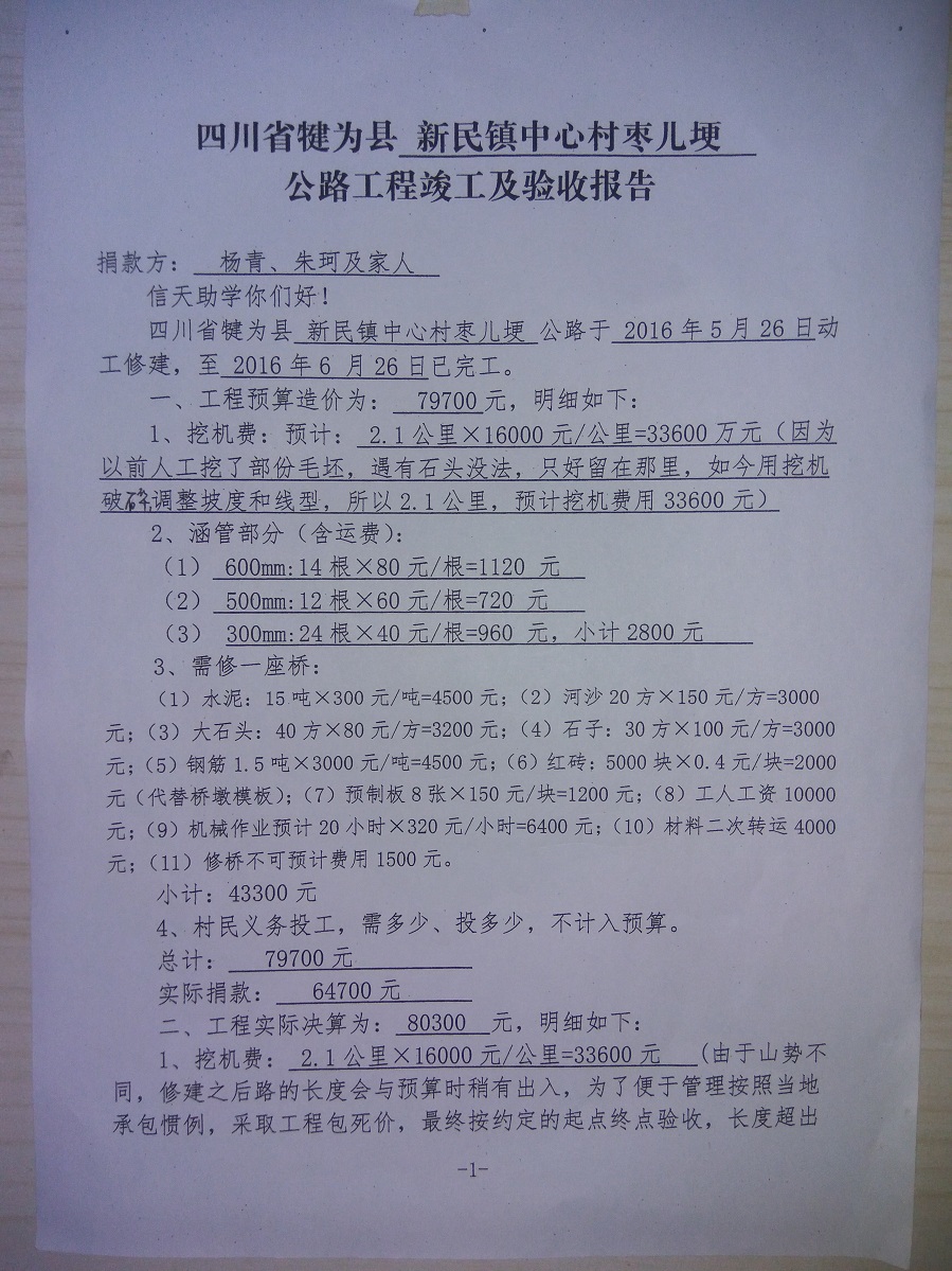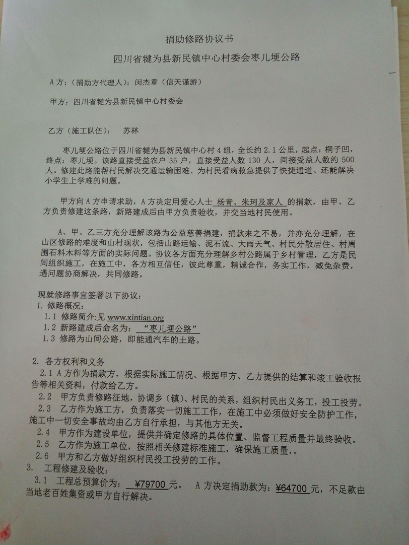 (1)爱心人捐款、村民投工投劳一起修土路;