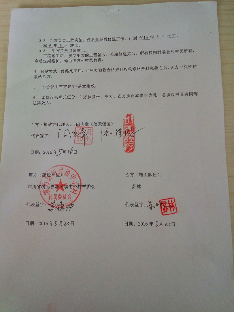 (4) 有的地方村民太困难,在大山更深处,这样,我们就尽量不让村民再集资了,只投工投劳就可以了。而,有的地方小水泥路就通到了山脚下,我们修路来接通外界的小水泥路,这样,材料可以直接运输到山脚下,村民除了投工投劳,就再集资一些钱,我们共同修建山村公路。