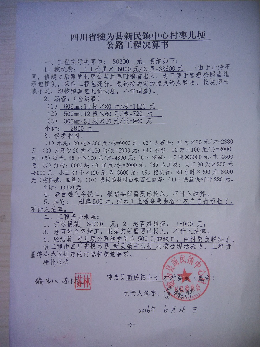 四、老百姓义务投工投劳,需多少投多少,不计入预算。