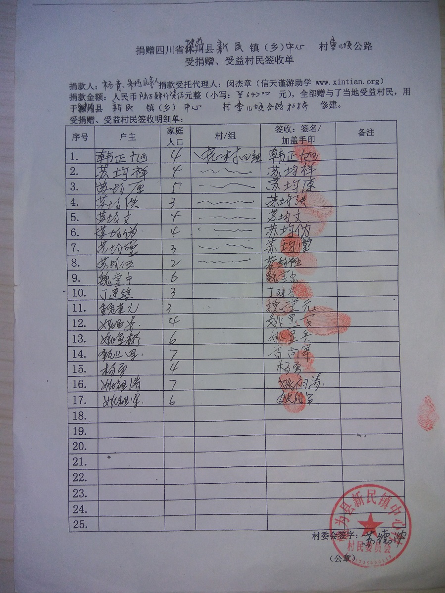 受益村民签收单
