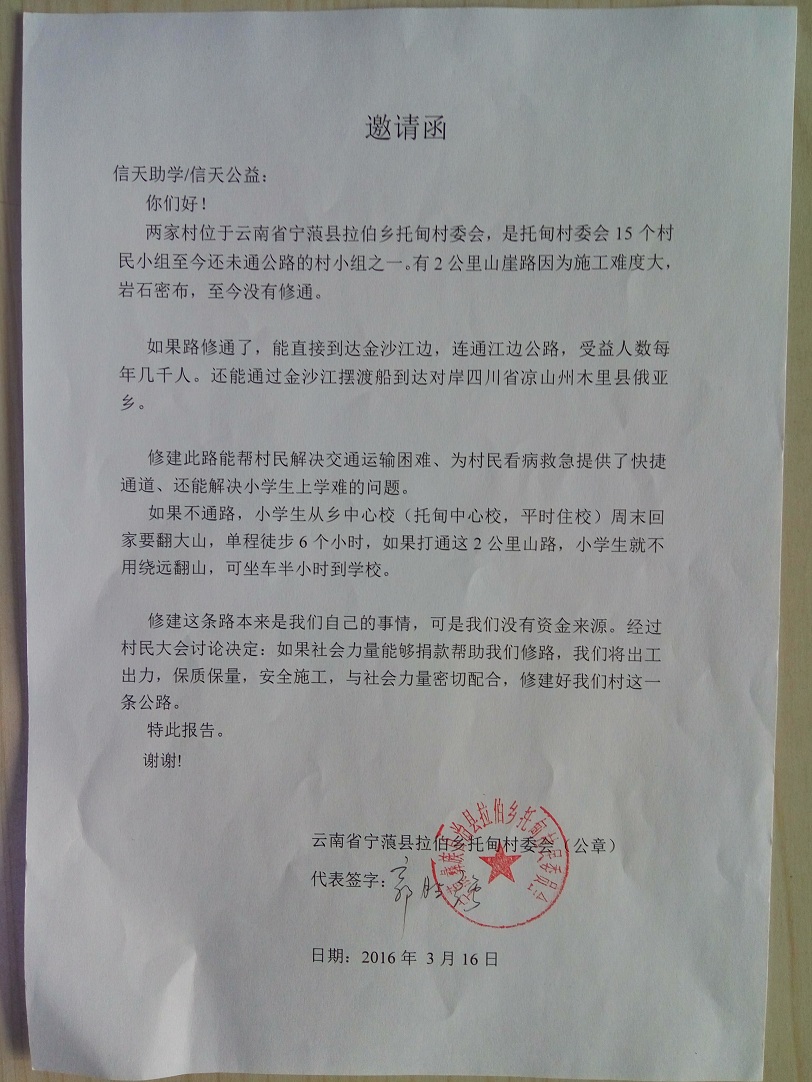修建此路能帮村民解决交通运输困难、为村民看病救急提供了快捷通道、还能解决小学生上学难的问题。如果不通路,小学生从乡中心校(托甸中心校)平时住校,周末回家要翻大山,单程徒步6个小时,如果打通这2公里山路,小学生就不用绕远翻山,可坐车半小时到学校。
