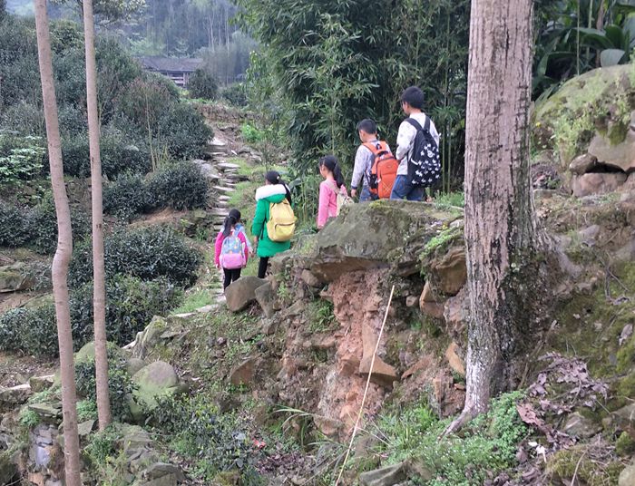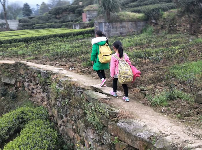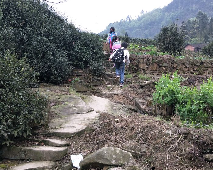 不通公路,小学生上学困难。