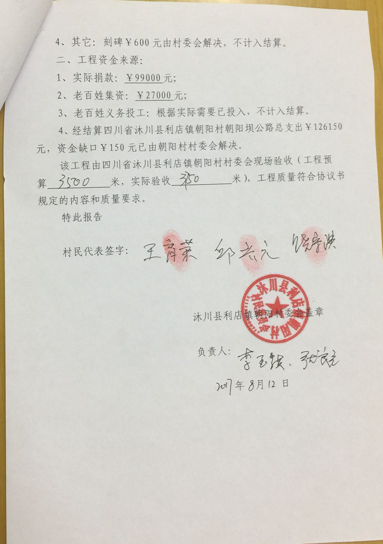 (4) 有的地方村民太困难,在大山更深处,这样,我们就尽量不让村民再集资了,只投工投劳就可以了。而,有的地方小水泥路就通到了山脚下,我们修路来接通外界的小水泥路,这样,材料可以直接运输到山脚下,村民除了投工投劳,就再集资一些钱,我们共同修建山村公路。
