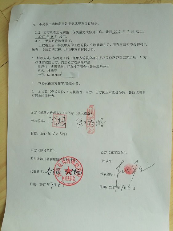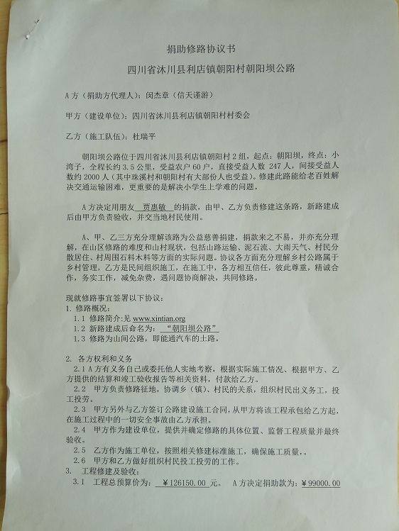 捐助修路协议书