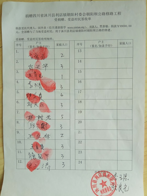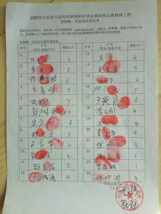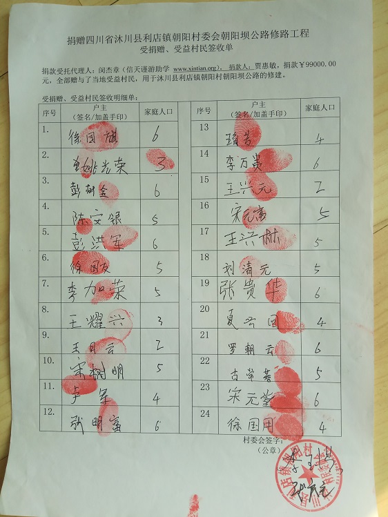受益村民签字单